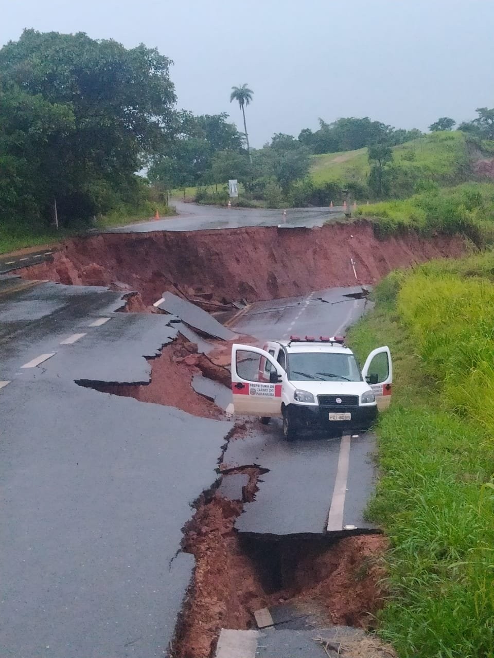 Uma cratera se abriu no momento em que uma ambulância passava no quilômetro 80 da LMG-743, na madrugada desta segunda-feira (10), em Patos de Minas, no Alto Paranaíba. O incidente ocorreu na rodovia que liga Carmo do Paranaíba a Quintinos.