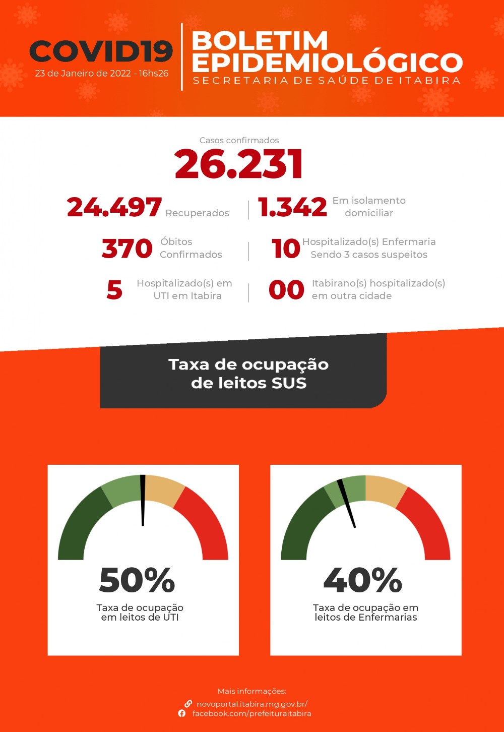 Até o fechamento do Boletim Covid de Itabira, deste domingo 23/01/2022, não havia registro de óbito.