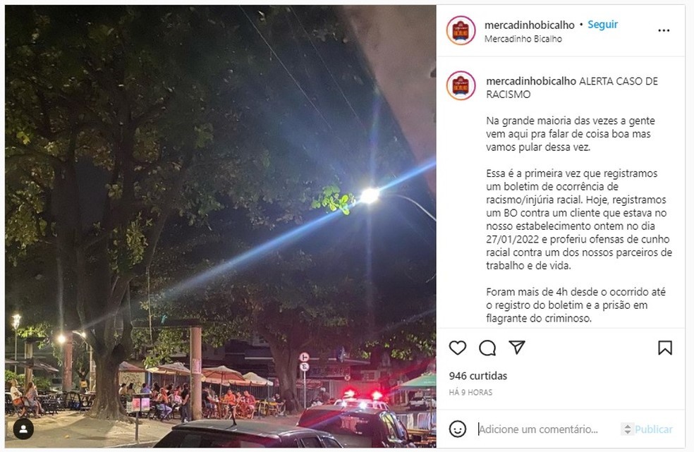 Essa é a primeira vez que registramos um boletim de ocorrência de racismo/injúria racial. Hoje, registramos um BO contra um cliente que estava no nosso estabelecimento ontem no dia 27/01/2022 e proferiu ofensas de cunho racial contra um dos nossos parceiros de trabalho e de vida.