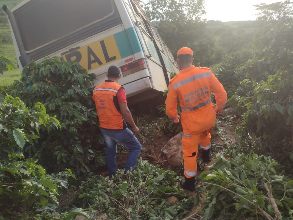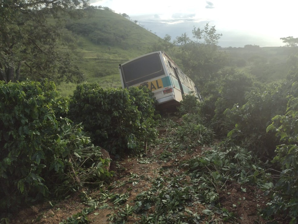 Foi neste momento, de acordo com os bombeiros, que o condutor jogou o ônibus para o lado esquerdo da pista, em uma lavoura de café, descendo aproximadamente 100 metros em uma ribanceira. O veículo só parou ao colidir em uma árvore.