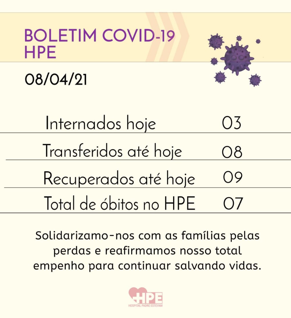 Confira o Boletim COVID-19 do Hospital Padre Estevam desta quinta feira 08 de abril