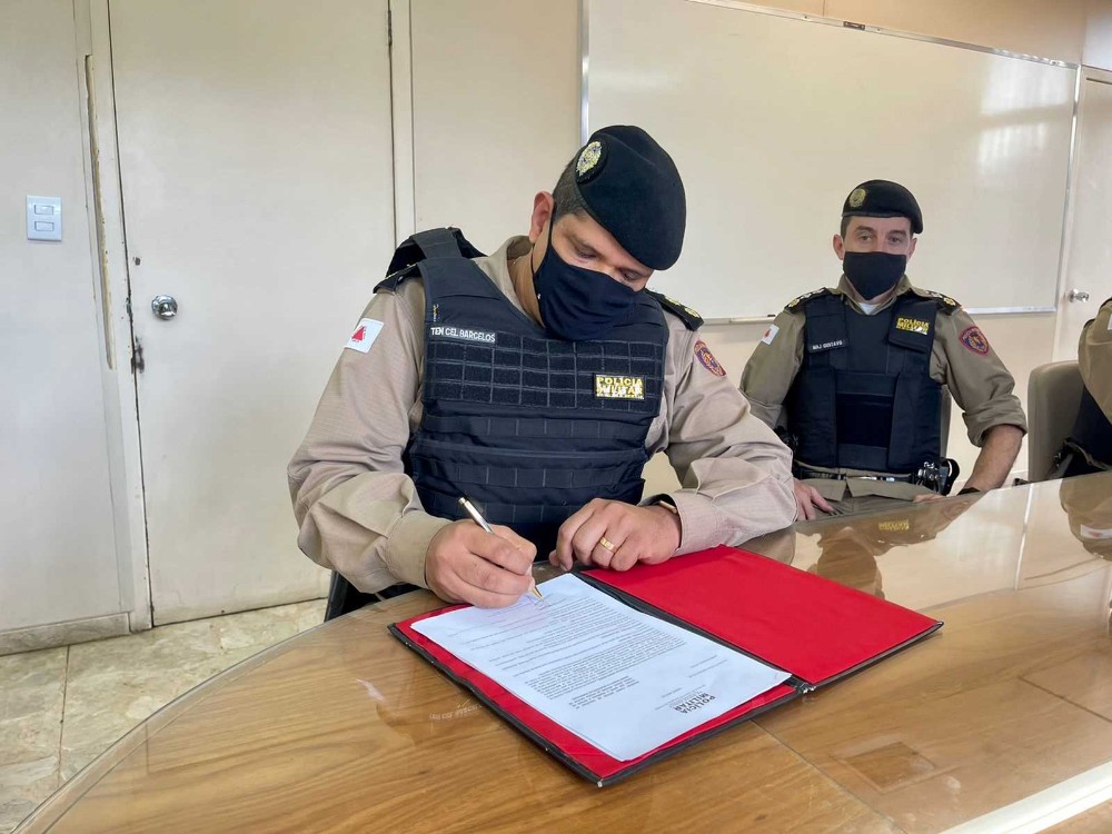 O termo aditivo foi assinado pelo comandante do 26º BPM, tenente-coronel Fábio Barcelos de Barros