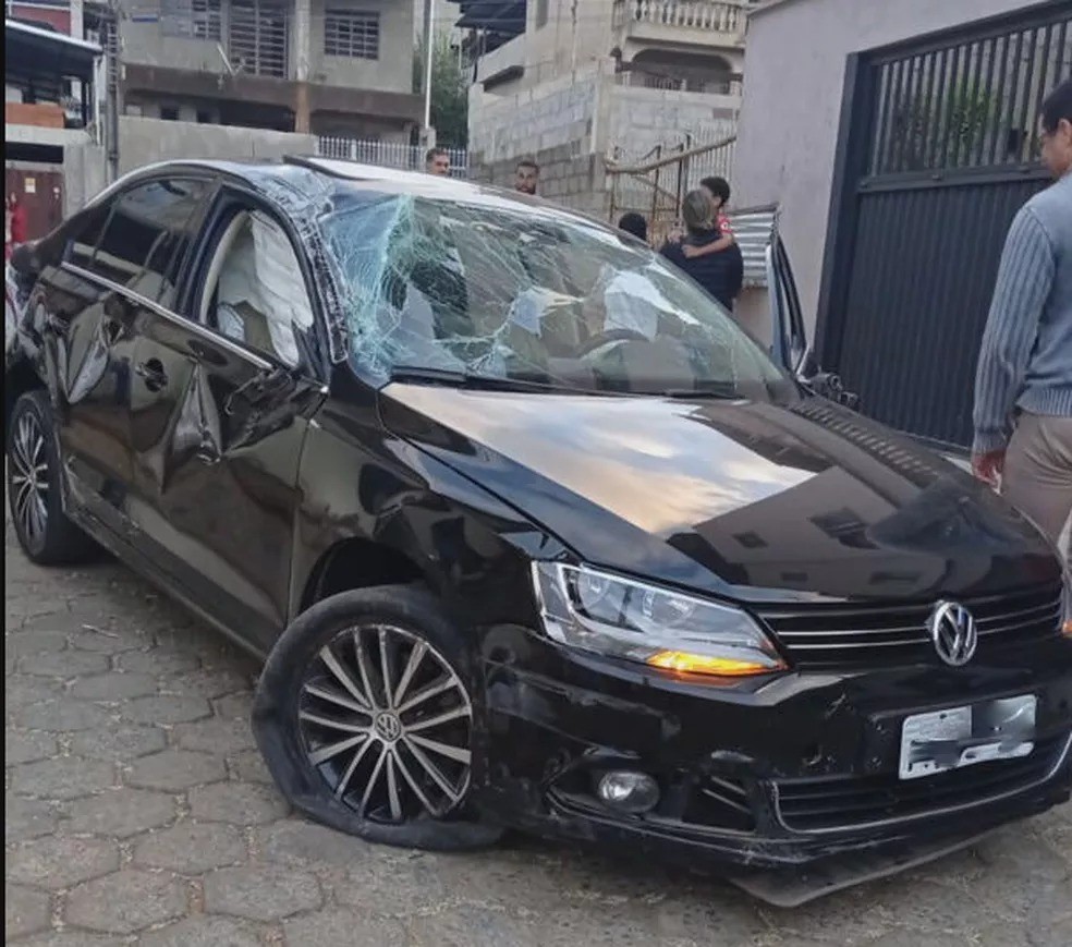 O para-brisa do veículo ficou destruído com a batida. — Foto: Reprodução.