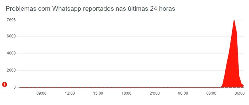 O site "Downdetector", que reúne relatos de falhas em diversos aplicativos e plataformas, registrou um pico de queixas sobre o WhatsApp por volta das 5h, no horário de Brasília (veja na imagem abaixo). Às 5h24, foram 7,8 mil queixas no Brasil. Na Índia, foram 11 mil queixas às 5h50. No Reino Unido, 68 mil.