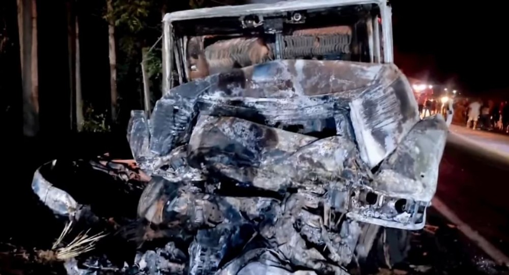 Três homens morrem carbonizados após acidente entre caminhonete e caminhão em Capelinha