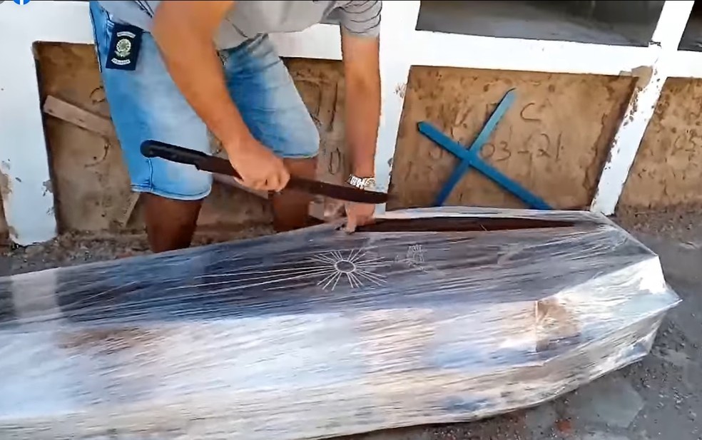 Vereador de Santa Bárbara do Leste quebra protocolo sanitário e abre caixão lacrado — Foto: Reprodução/Redes Sociais
