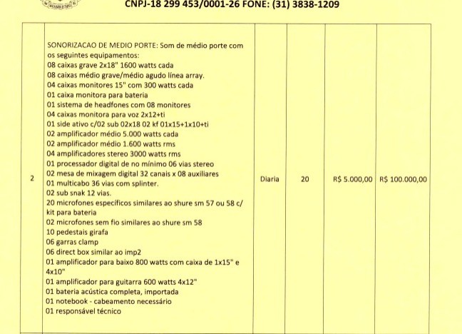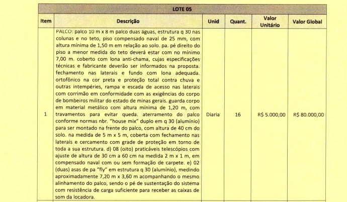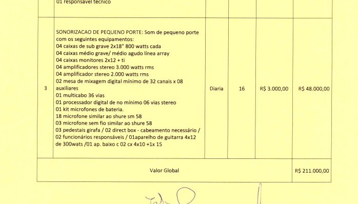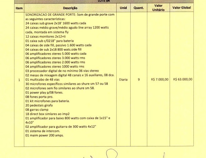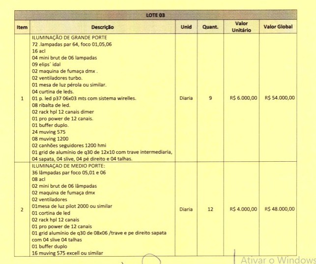 OBS: Neste processo licitatório não está incluso a contratação de artistas. Se trata apenas de locação de estrutura para eventos.