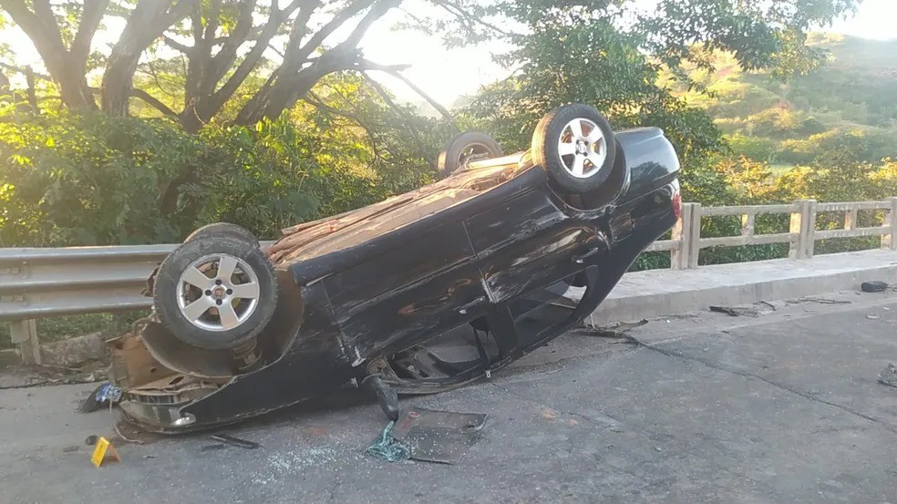 Carro capotou depois do acidente na BR-381 em Baguari — Foto: Redes sociais