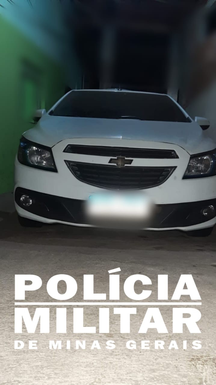 No local denunciado, os militares visualizaram o veículo GM/Prisma, de cor Branca denunciado, estacionado no interior da garagem, sendo confirmado que o verdadeiro veículo registrado na placa encontrava estava em Franca/SP.
