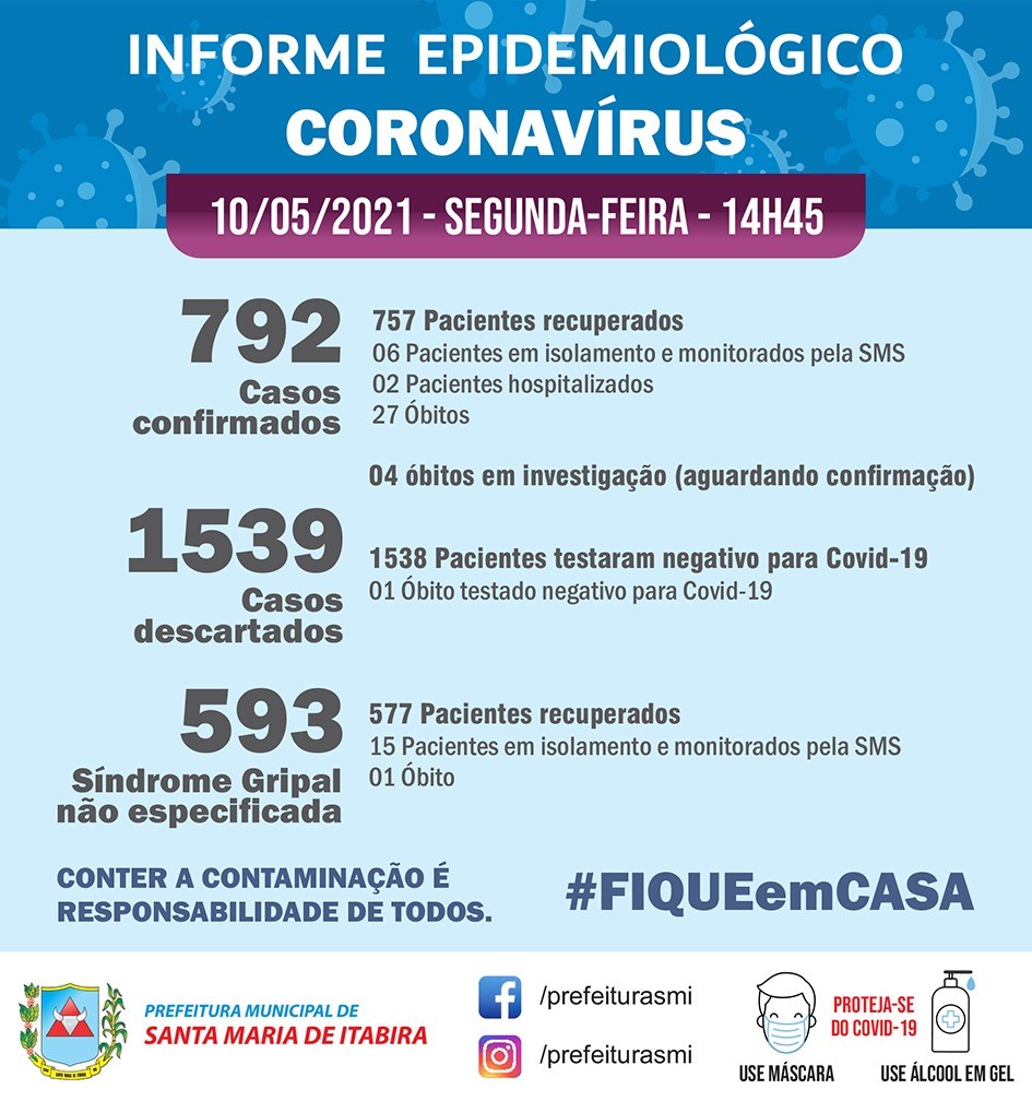 Informe Epidemiológico Coronavírus da Prefeitura Municipal de Santa Maria de Itabira