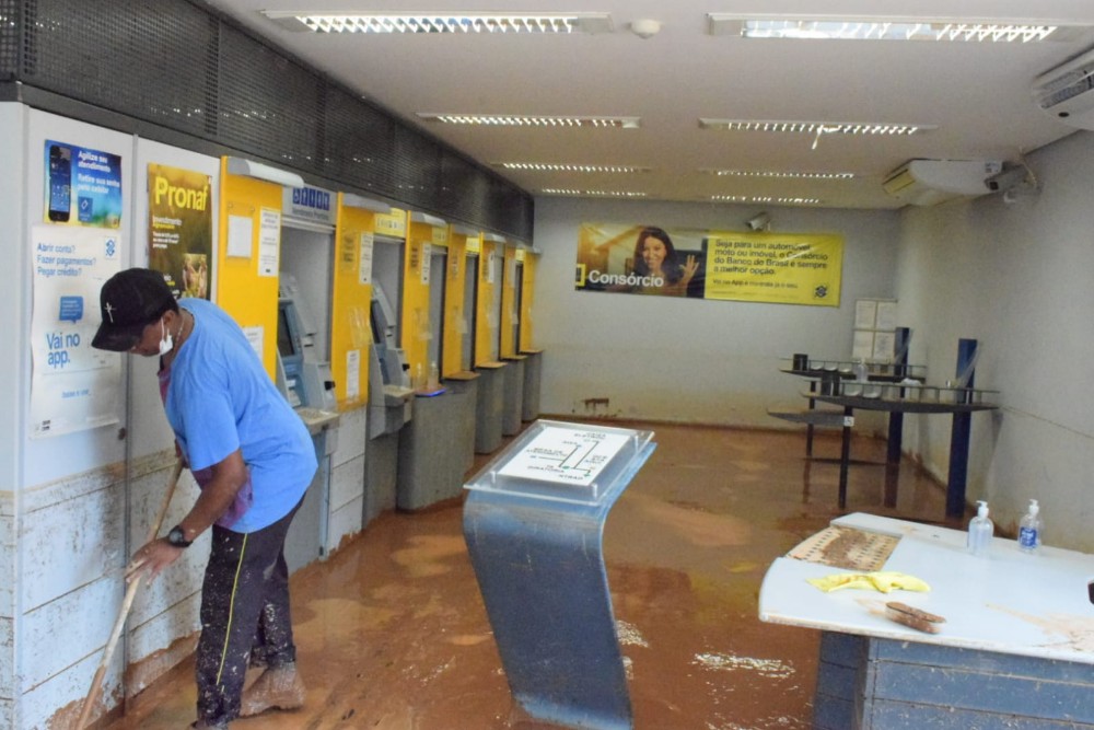 A unidade do Banco que fica próxima do Rio Girau que, em decorrência da forte enchente, provocou alagamentos em vários pontos da cidade. O imóvel, na Avenida Israel Pinheiro, foi invadido pela lama que ocupou cerca de 1,5 metro de seus cômodos. Móveis, materiais de trabalho e equipamentos foram danificados.