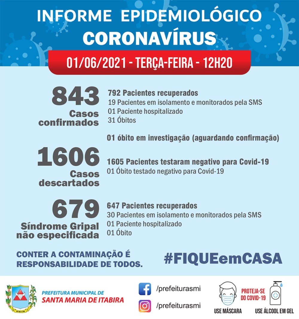 Boletim Covid-19; Santa Maria de Itabira confirma mais uma morte por coronavírus