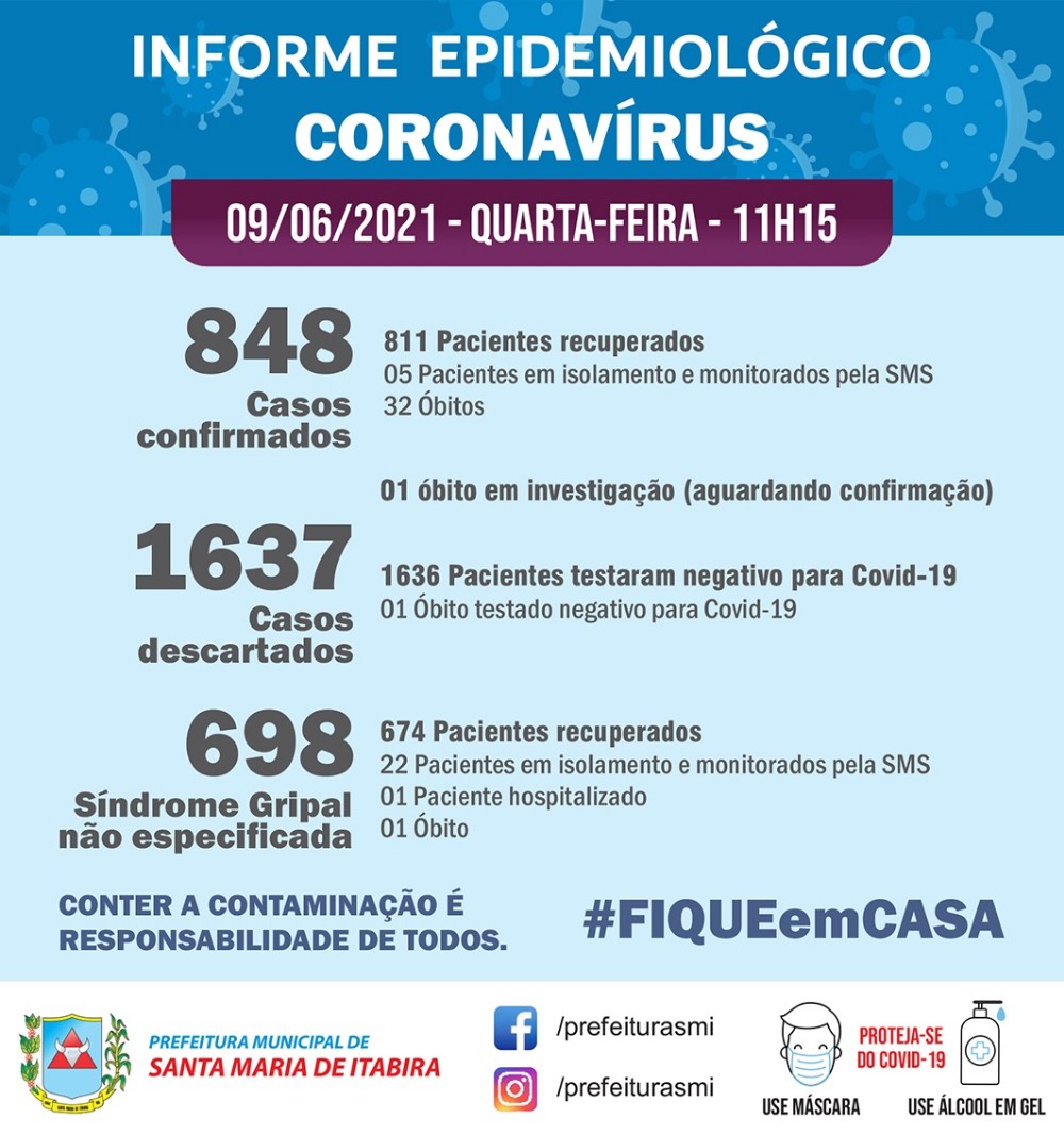 Informe Epidemiológico Coronavírus da Prefeitura Municipal de Santa Maria de Itabira