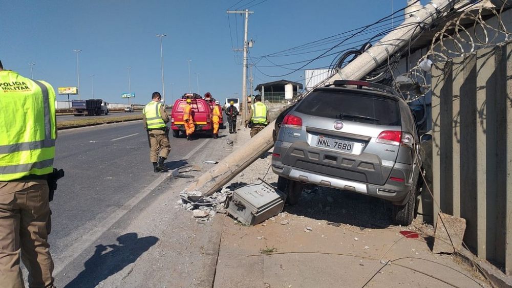 De acordo com o Corpo de Bombeiros, o carro passava pela BR-040, na altura do KM 526, no bairro Vila Paris, quando atingiu o poste. O Fiat Palio Weekend ficou destruído.