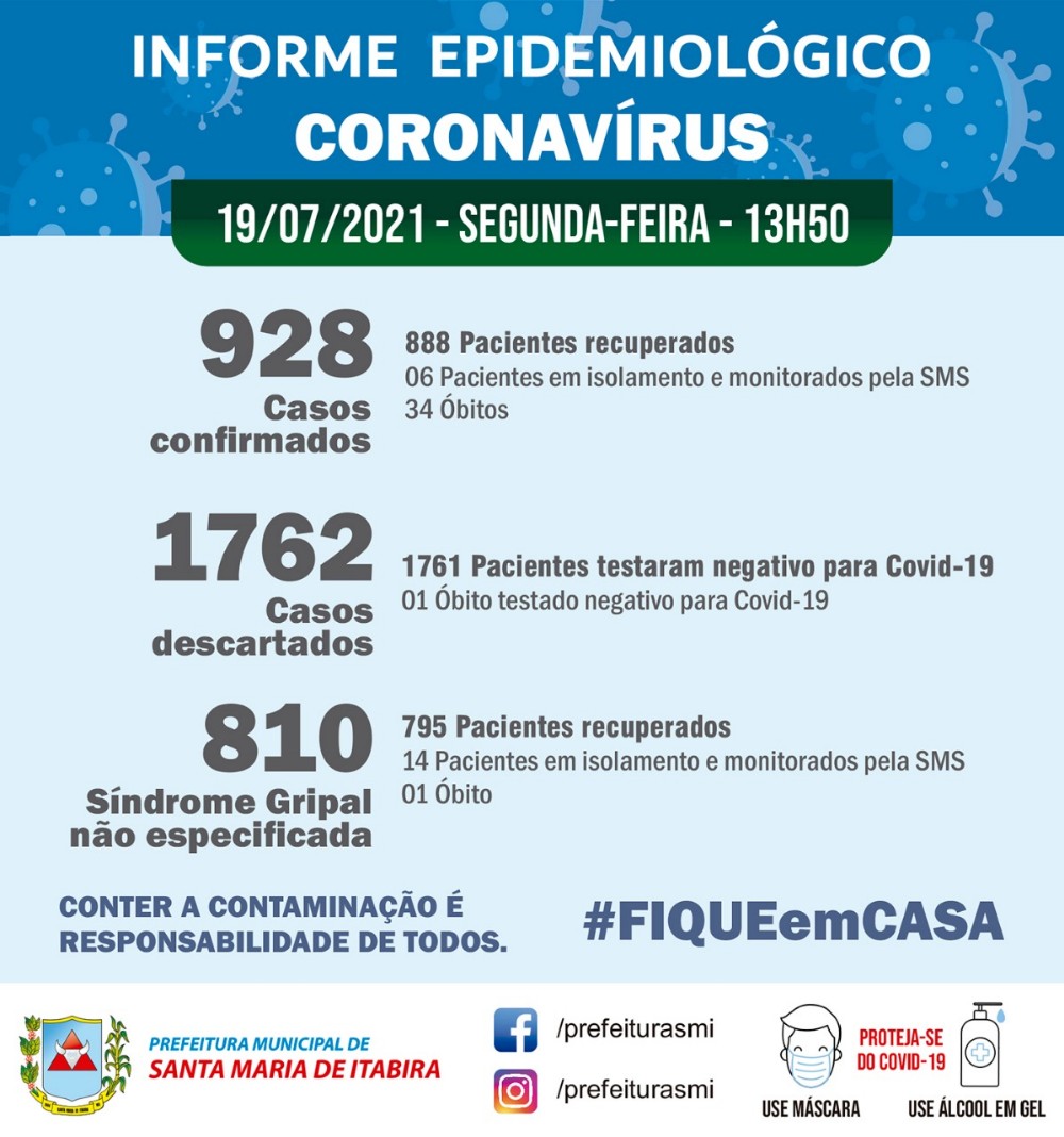 Informe Epidemiológico Coronavírus da Prefeitura Municipal de Santa Maria de Itabira