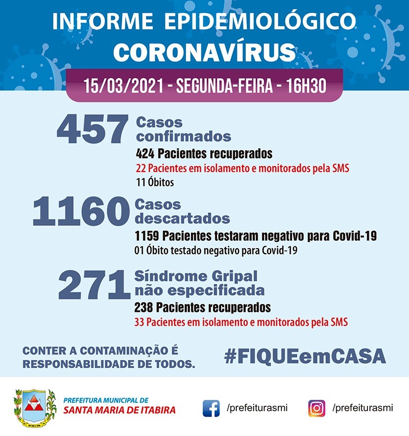 Confira o Boletim Coronavírus de Santa Maria de Itabira