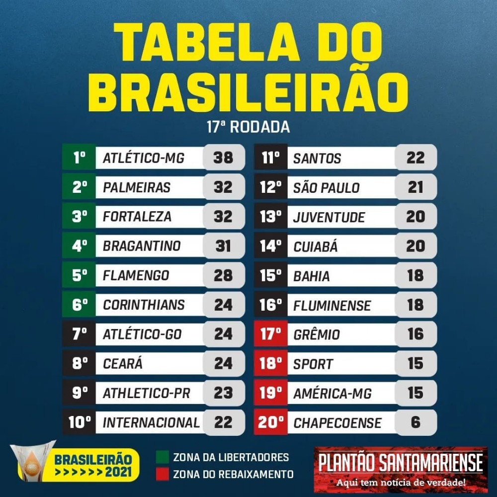 Confira a tabela do Brasileirão