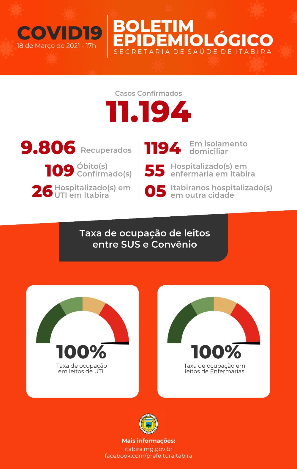 O boletim informa também que atualmente 1.194 pessoas estão em isolamento em Itabira, com resultado positivo para coronavírus.