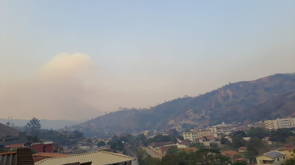 Uma intensa nuvem de fumaça cobre a cidade de Santa Maria de Itabira na tarde deste domingo 19 de setembro.