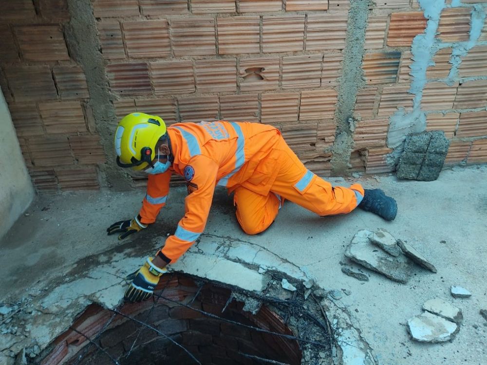 Uma mulher foi resgatada pelo Corpo de Bombeiros após cair em uma fosse de aproximadamente 5 metros de profundidade, em Janaúba, na sexta-feira (22).