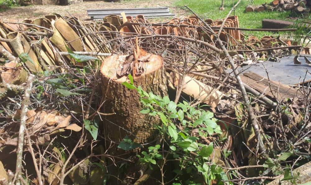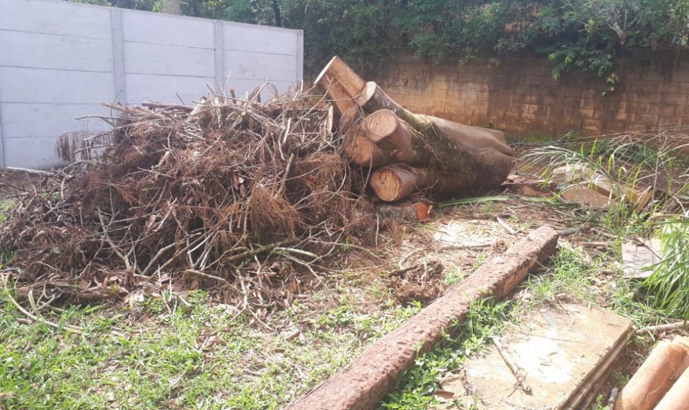 Outro crime ambiental cometido foi o de cortar 4 árvores nativas, de médio e grande porte, com o uso de uma motosserra, sem as devidas autorizações do órgão ambiental competente.