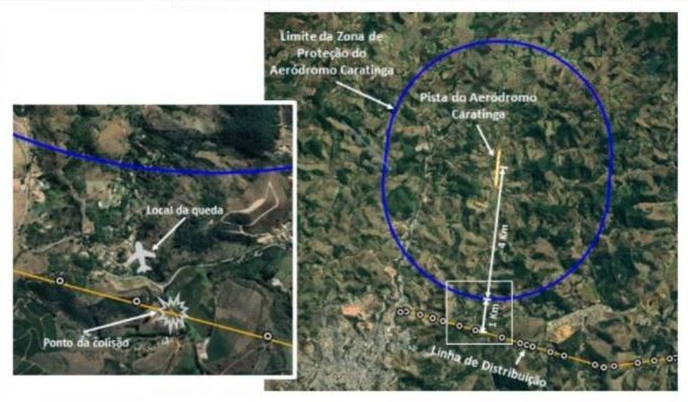 "A Cemig esclarece que a Linha de Distribuição atingida pela aeronave prefixo PT-ONJ, no trágico acidente do dia 5/11, está fora da zona de proteção do Aeródromo de Caratinga, nos termos de Portaria específica do Departamento de Controle do Espaço Aéreo (DECEA), do Comando da Aeronáutica Brasileiro (como mostra imagem já divulgada pela Cemig).