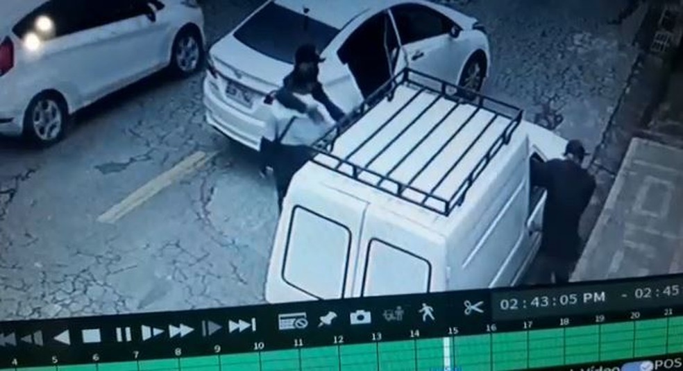 Imagens de circuito de segurança que a PM teve acesso mostram o momento em que a suposta vítima abraça um dos criminosos. Em seguida, ele volta para o banco do motorista, aguarda o embarque de um comparsa e sai com o veículo.