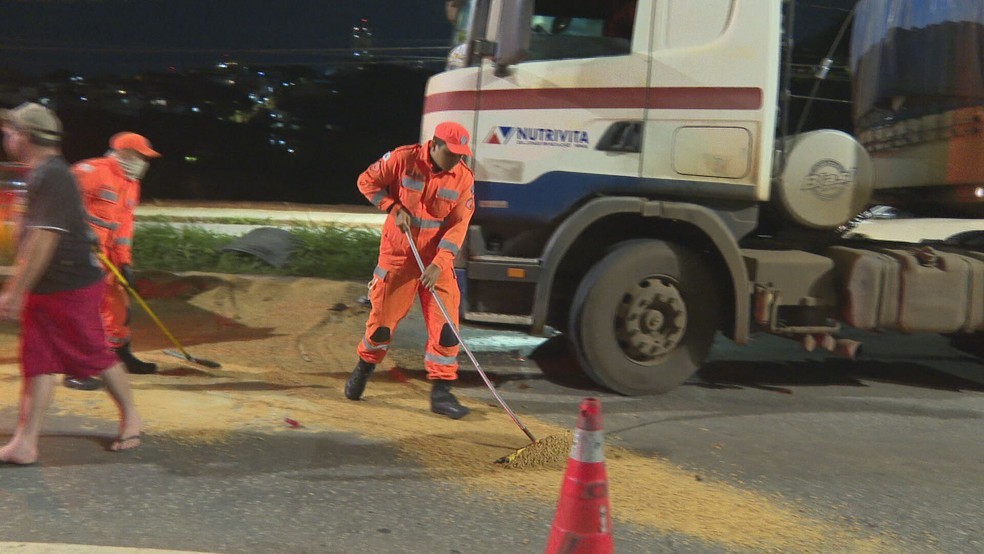 Em outro trecho, um acidente envolveu dois caminhões, na altura do bairro Sumaré, na Região Nordeste. Um deles, carregado com soja, teve parte da carga espalhada na pista. O Corpo de Bombeiros foi acionado porque houve derramamento de óleo.