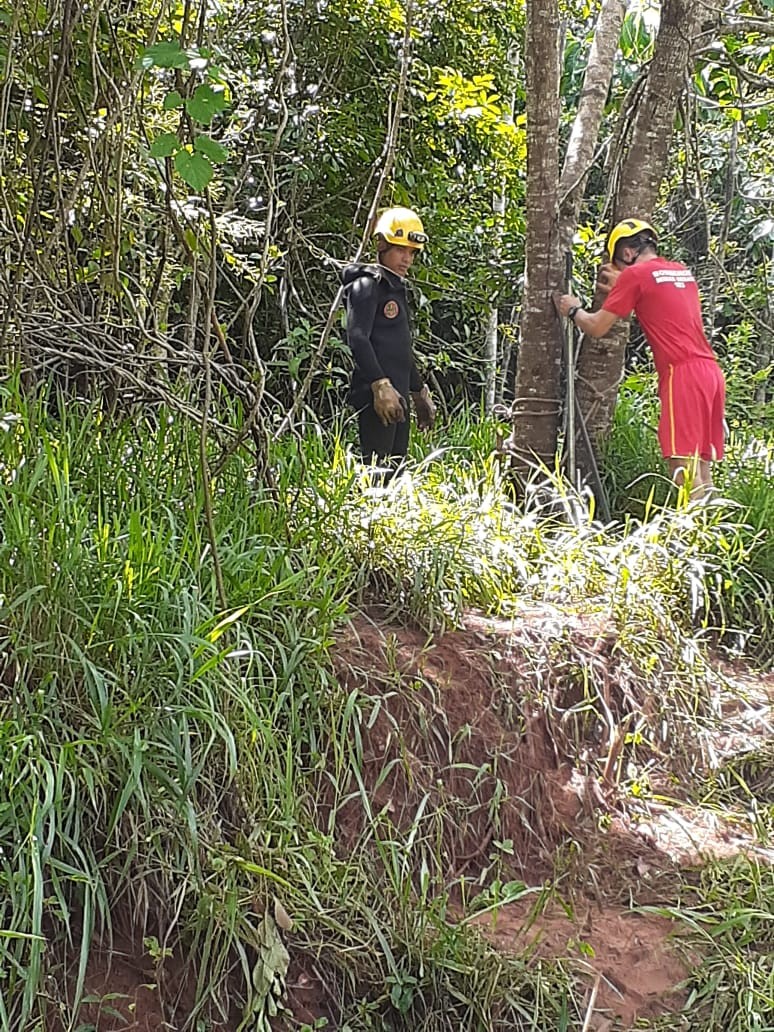 A operação durou em torno de três horas para retirarem a vaca do córrego. Com auxílio do aparelho de tração (talha tirfor) a vaca foi arrastada até um local firme onde pudesse levantar.