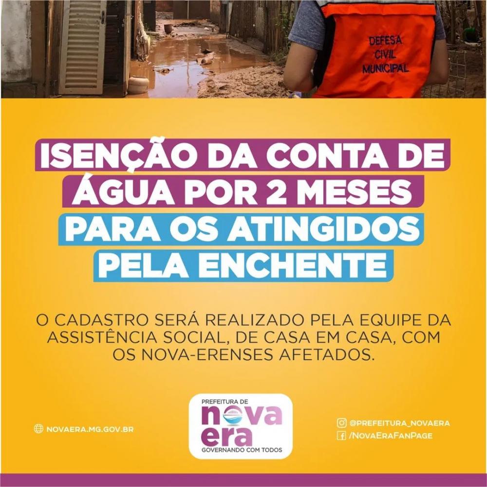 Prefeitura de Nova Era anuncia isenção de 2 meses na conta de água de famílias afetadas pela enchente