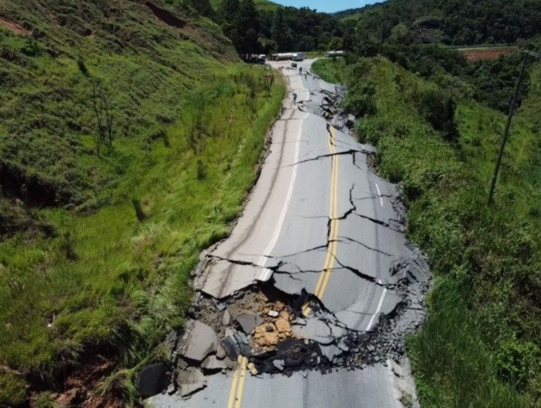 BR-381 interditada em Nova Era após erosão na pista (Veja Vídeo)