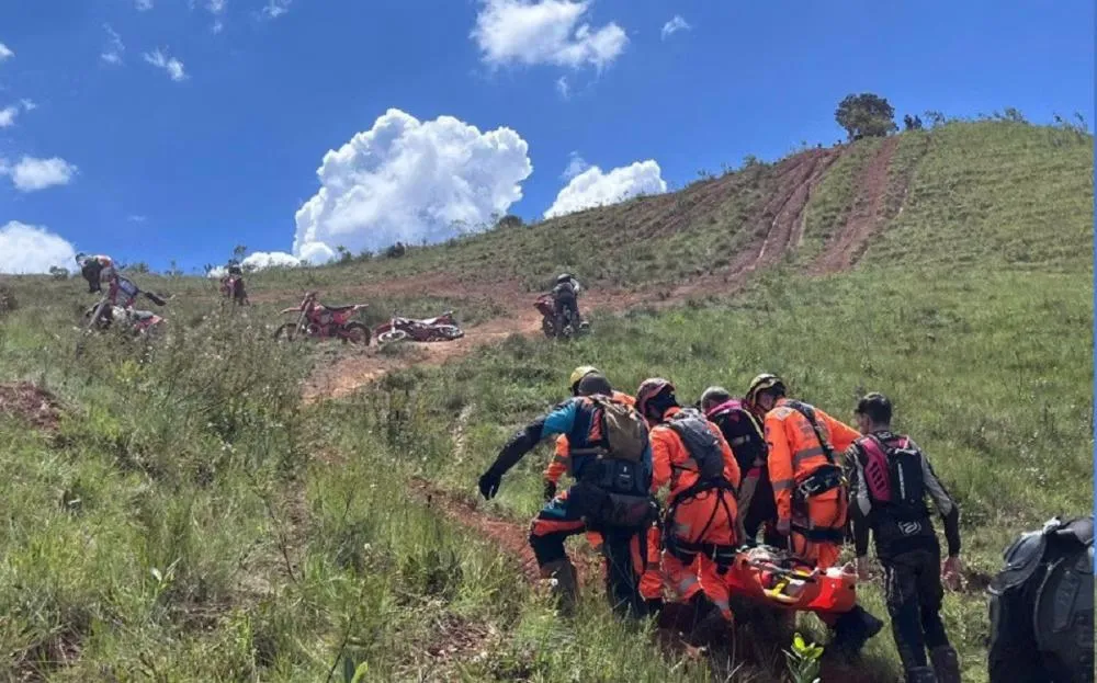 Motociclista é resgatado após cair em ribanceira durante trilha em Nova Lima
