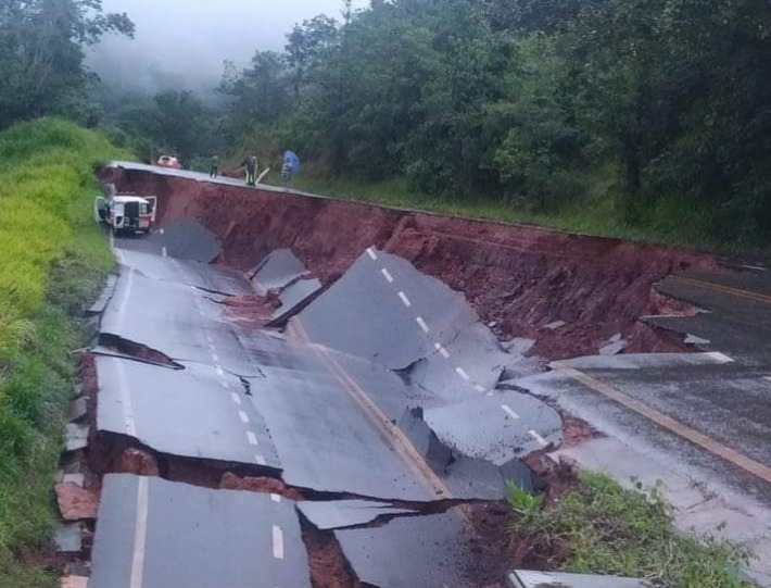 Cratera se abre na LMG-743 no momento em que uma ambulância passava; Via completamente interditada, em Patos de Minas