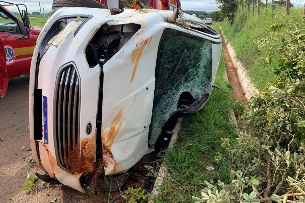 Motorista contou aos bombeiros que teria visto dois animais cruzarem a pista e que, ao tentar desviar, perdeu o controle da direção e capotou