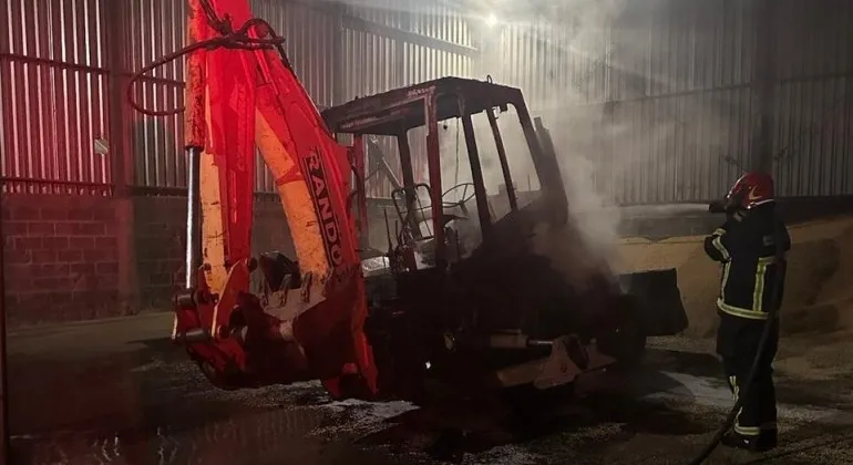Retroescavadeira pega fogo em fábrica de rações em Patos de Minas