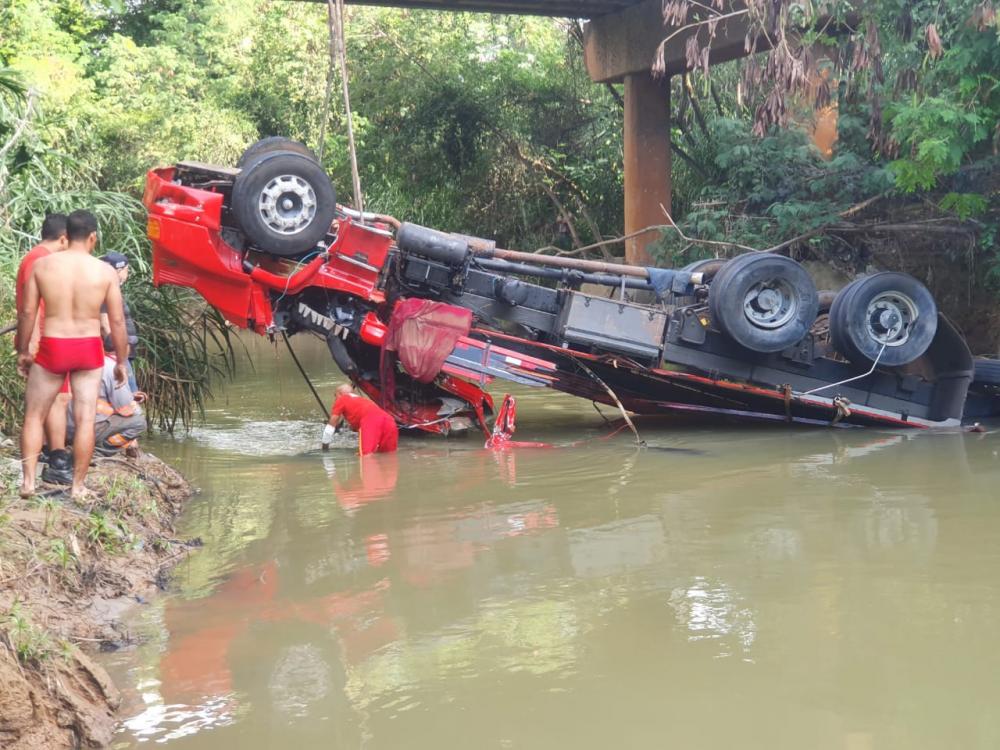 Uma pessoa morre após caminhão perder o freio e cair dentro de rio