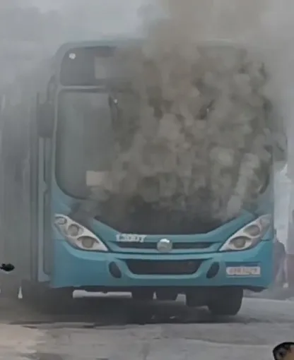 Ônibus da Viação Vale do Mucuri pega fogo na Vila Progresso, em Teófilo Otoni