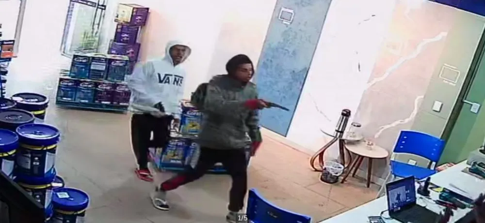 Dupla armada agiu de forma coordenada, rendeu atendente e fugiu após levar dinheiro e objetos; Polícia Militar e Guarda Civil Municipal realizam buscas pelos suspeitos