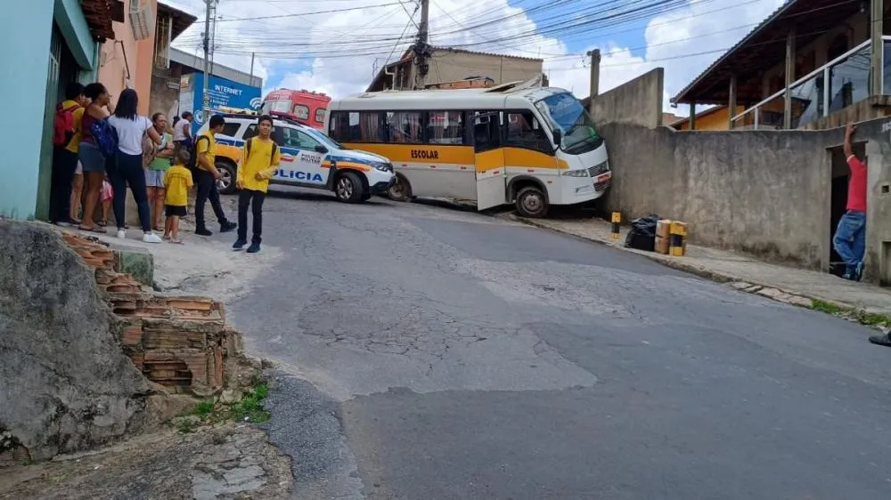 Ônibus escolar bate em muro de casa e deixa uma pessoa ferida no Nossa Senhora de Fátima, em Sabará (MG)