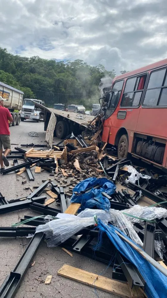 Um comerciante da região informou que o acidente na rodovia da morte aconteceu pois a carga se desprendeu do caminhão