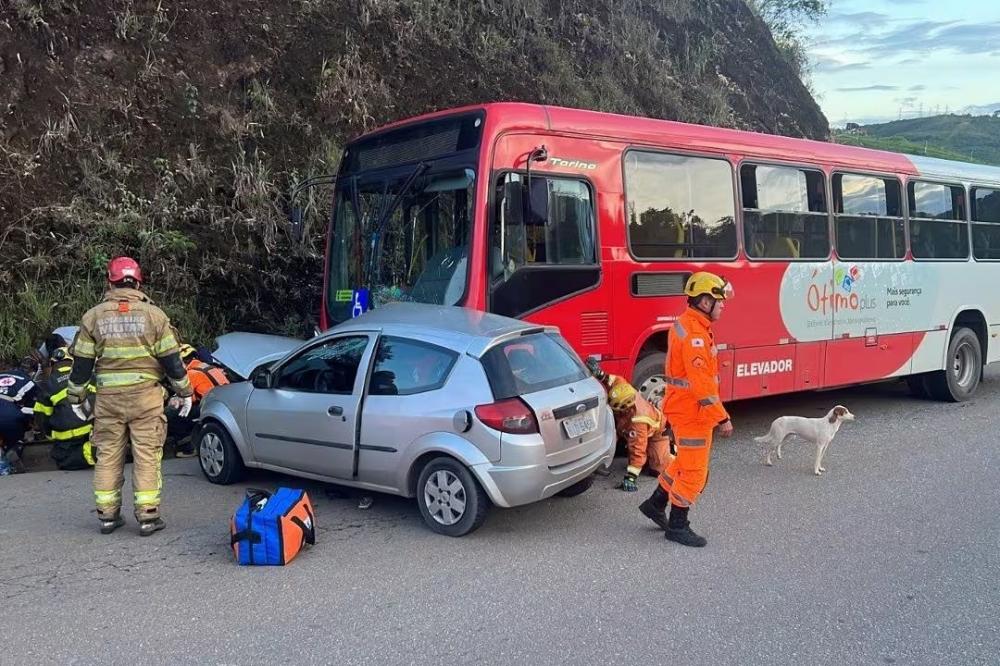 Batida entre ônibus e carro deixa motorista ferido na curva do ‘S’ em Sabará