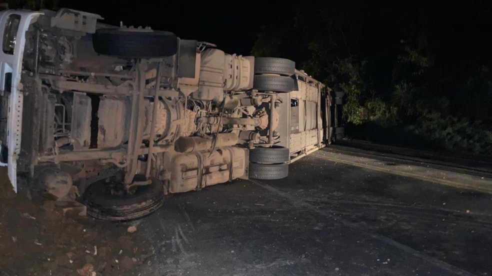 Caminhão tomba e pega fogo às margens da BR-251, em Salinas (MG)