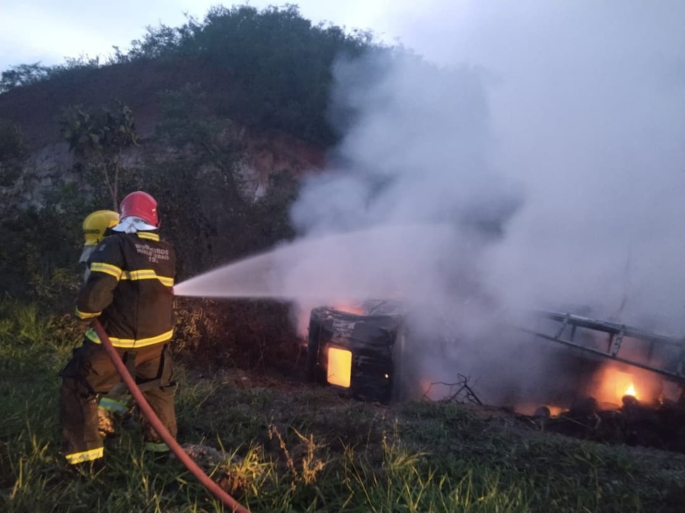 Corpo de Bombeiros e Defesa Civil de Salinas foram acionados para conter as chamas. Motorista ficou ferido e foi socorrido para hospital.