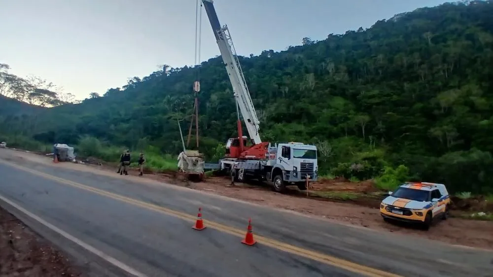 Equipamento avaliado em mais de R$ 1 milhão era transportado pela MGC-120; motorista não se feriu