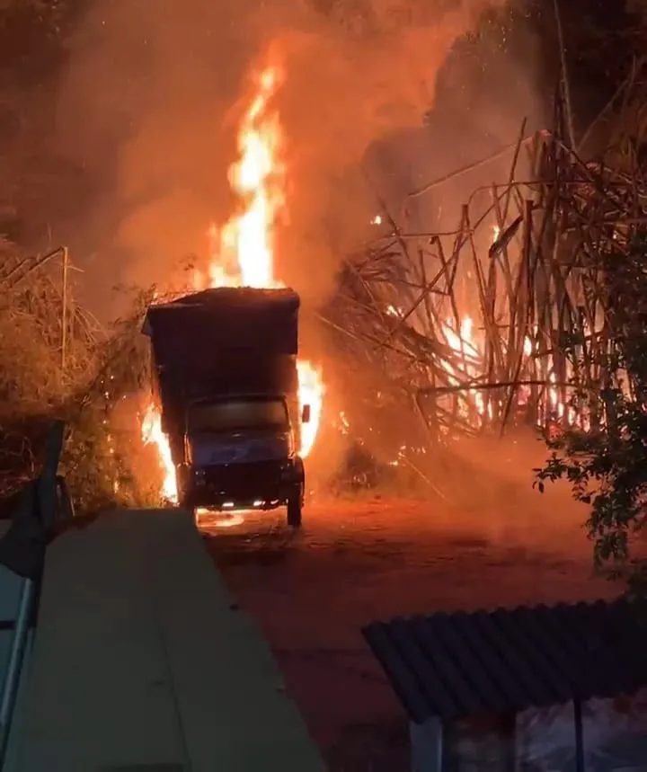 Veja vídeo; Incêndio próximo a posto de combustível destrói caminhão em Santa Maria de Itabira