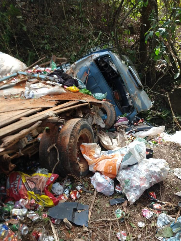 Caminhão com três ocupantes cai em ribanceira na estrada Itauninha