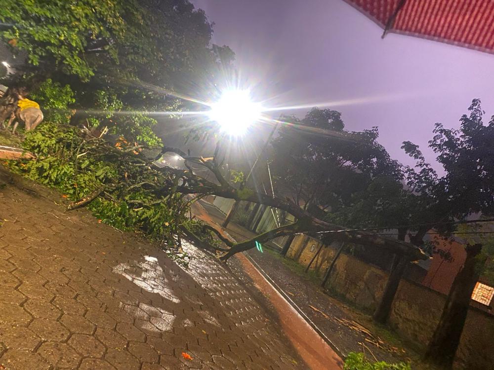 A árvore caiu em cima da rede elétrica, ninguém ficou ferido.