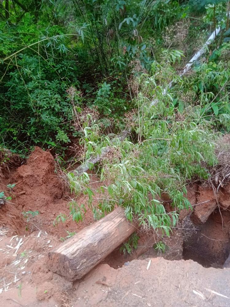 Chuva arranca ponte que dá acesso ao Córrego dos Motas no Distrito de Itauninha em Santa Maria de Itabira