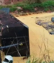 Acidente com Carreta de Milho bloqueia estrada para São Domingos do Prata (MG)