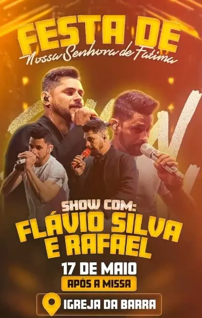 Festa de Nossa Senhora de Fátima será celebrada no próximo sábado (17/05) na Comunidade da Barra em São Sebastião com show de Flávio Silva & Rafael